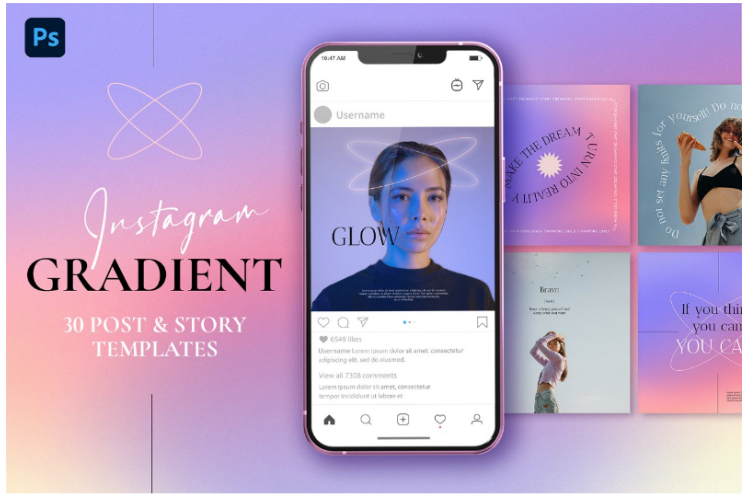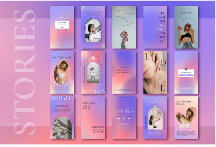 Insta gradient pack comes with 15 editable posts and 15 editable stories.